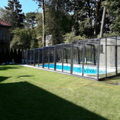 Eleganckie zadaszenie 10,00 x 4,05 x 2,15 basenowe wysokie SMART XL poliwęglan lity wysoka pokrywa basenowa