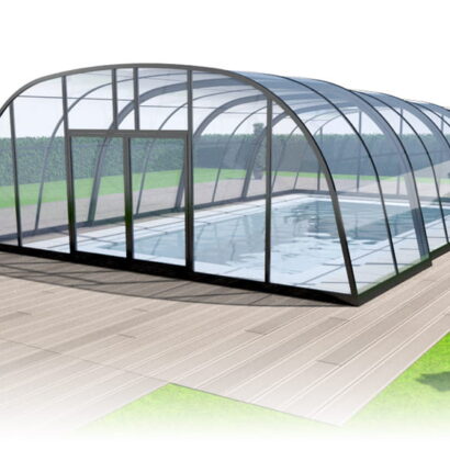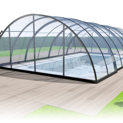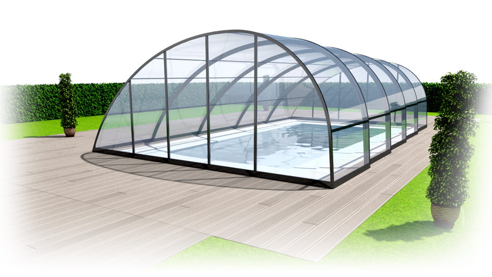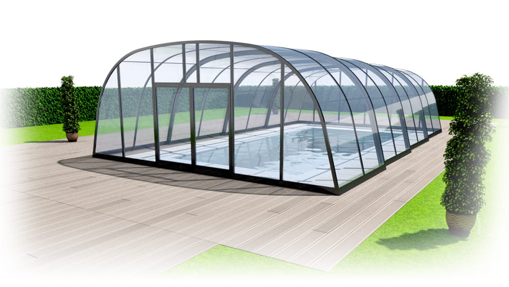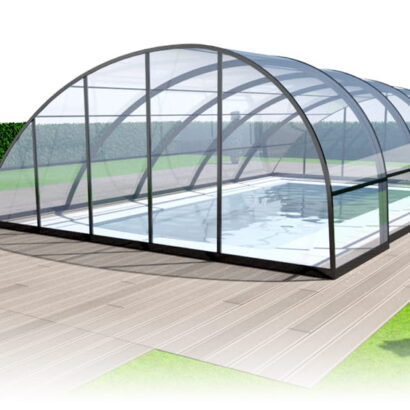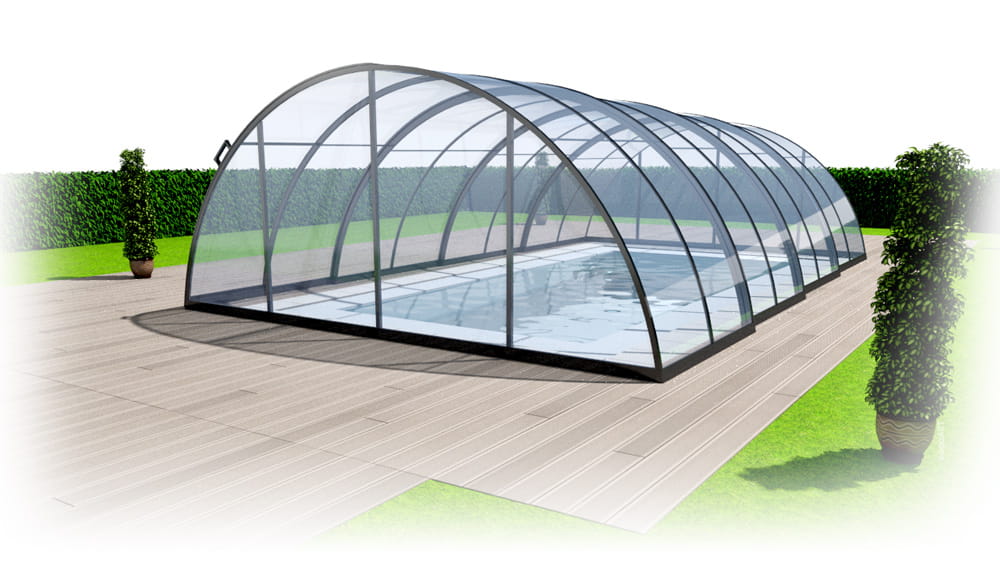 Eleganckie zadaszenie 10,00 x 4,35 x 2,15 basenowe wysokie OMEGA poliwęglan lity wysoka pokrywa basenowa