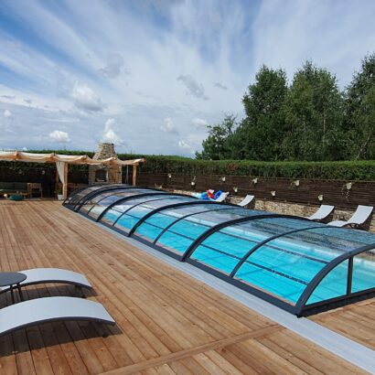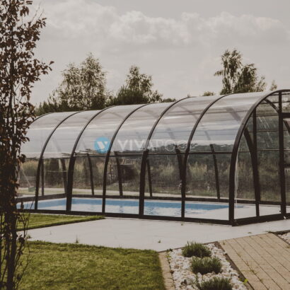 Wysokie zadaszenie na basen dach OPTIMA 10,8 x 5,25 x 2,50 poliwęglan lity pokrywa basenowa jacuzzi