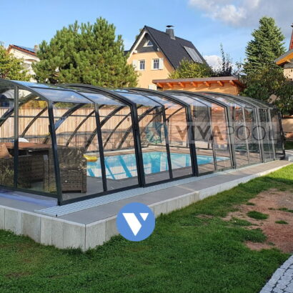 Wysokie zadaszenie na basen dach OPTIMA 10,8 x 5,25 x 2,50 poliwęglan lity pokrywa basenowa jacuzzi